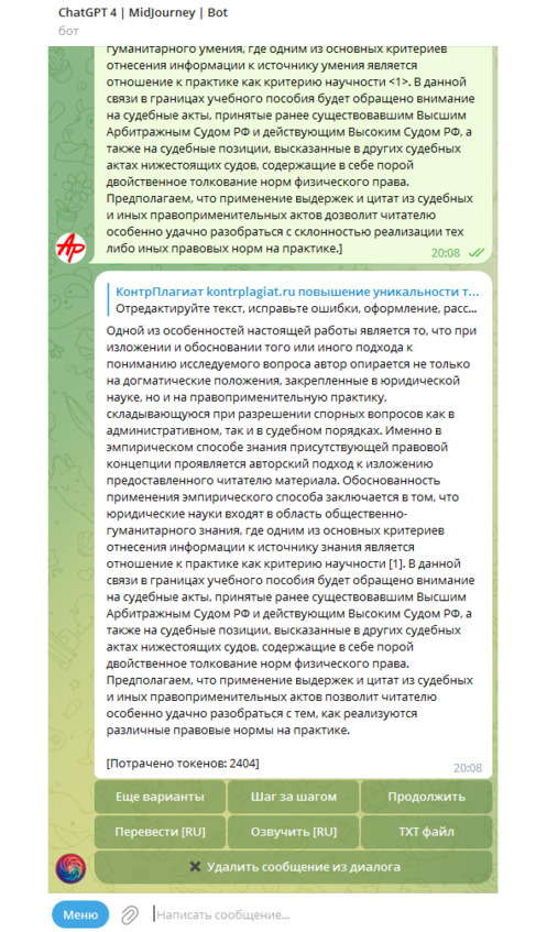 Рисунок 22 Процесс редактирования текста с помощью GPT