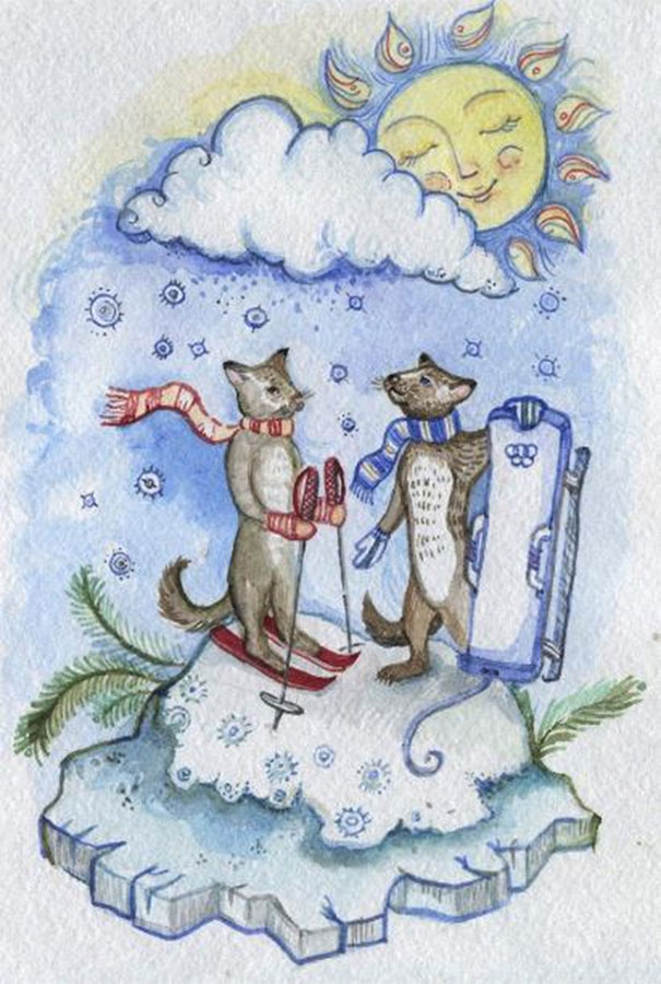 Орлы, львы, драконы, единороги спешат к лыжне. Антилопы, кенгуру, зайцы и леопарды стоят со сноубордами и ждут старта. Страусы, попугаи с коньками, а медведи с санями. Поддержать спортсменов пришли болельщики.