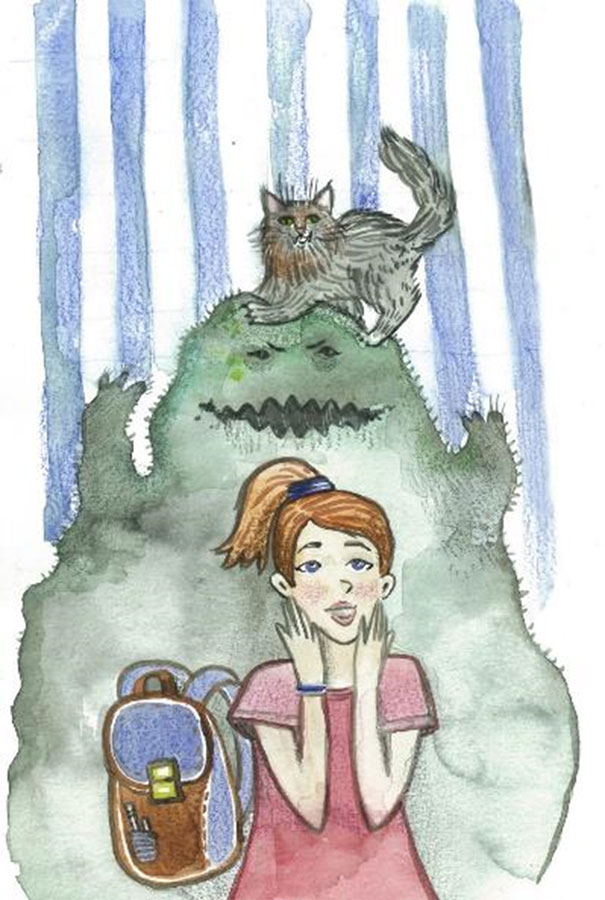 Тут Васька открыл один глаз: «Кто это мне тут спать мешает?» Открыл другой глаз, увидел Плесень, и недобрые зелёные огоньки засветились в его глазах. Встал он на подоконнике во весь свой рост, выгнул спину, блеснул глазами, усы распушил да как зашипит!