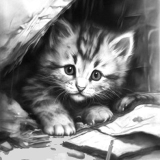 Котёнок был весь грязный и худой. Он жалобно замяукал. Его шерстка вся слиплась, и он был похожим на ёжика.