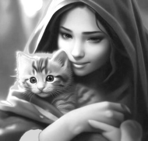 Взяли котёнка, посадили в коробку и пошли к одинокой женщине. Постучали к ней в дверь. Вышла она и удивилась.