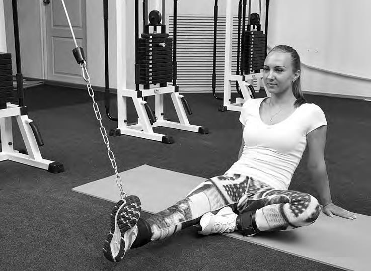 И.П. То же. Нога зафиксирована за верхний блок тренажера.