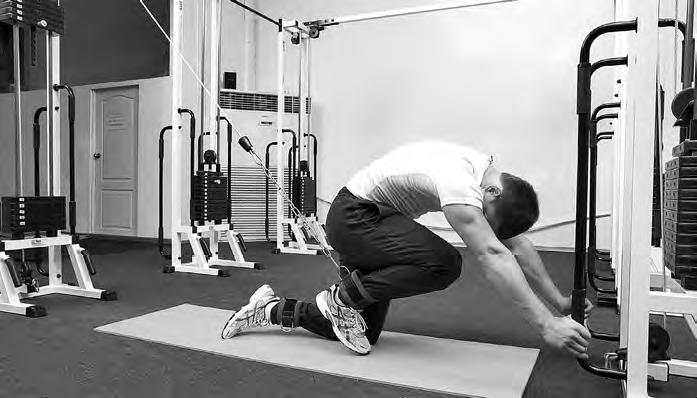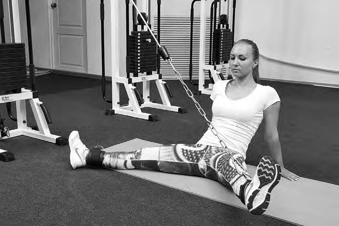 И.П. То же, что в упражнении Б. Отведение выполняется прямой ногой, зафиксированной с помощью манжеты к верхнему блоку тренажера.