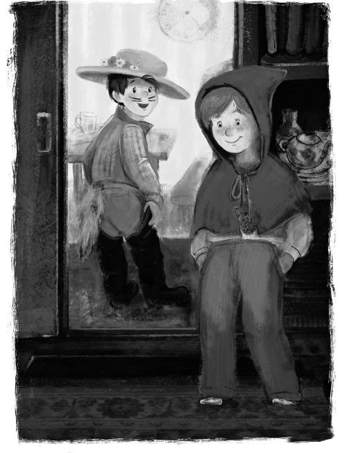 И я тоже танцевал, но всё время спотыкался и чуть не падал из-за больших сапог, и шляпа тоже, как назло, постоянно съезжала почти до подбородка.