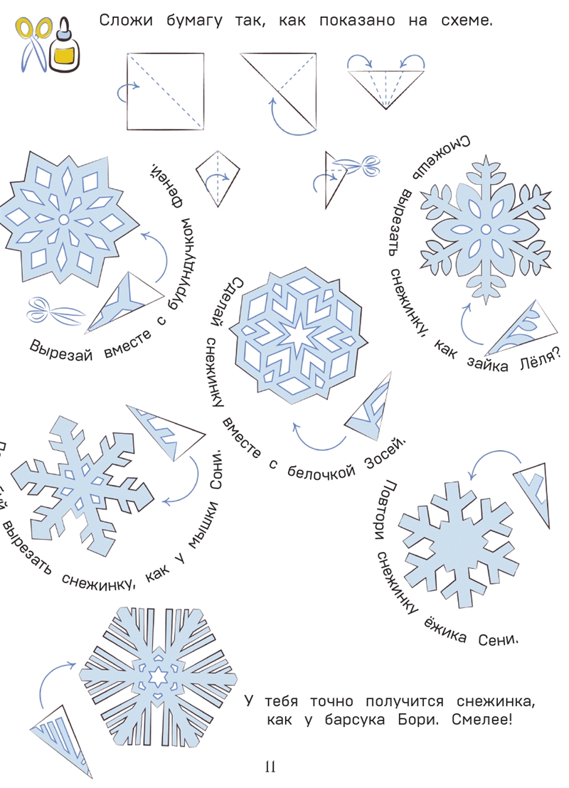 А вот так, улыбнулась Лёля, мы сделаем свои снежинки, самые разные, самые красивые! И украсим ими поляну.