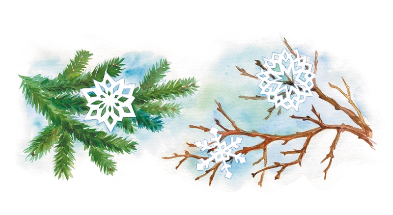 На следующий день все вынесли свои снежинки. Каждая из них была особенной. Зверята прикрепили к снежинкам ниточки и украсили ветви деревьев на поляне.