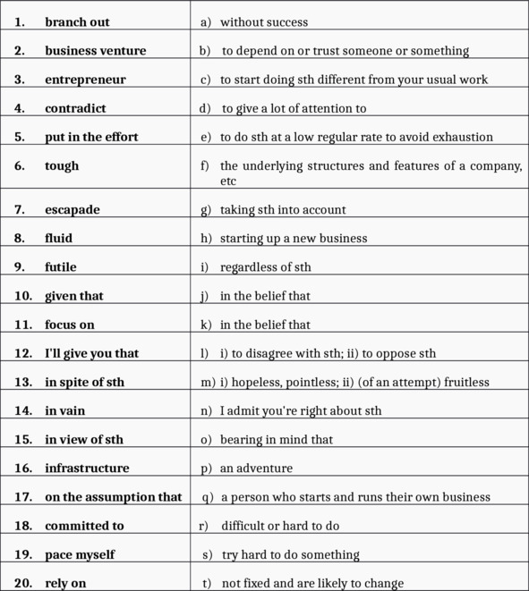 Match the words with the definitions.
