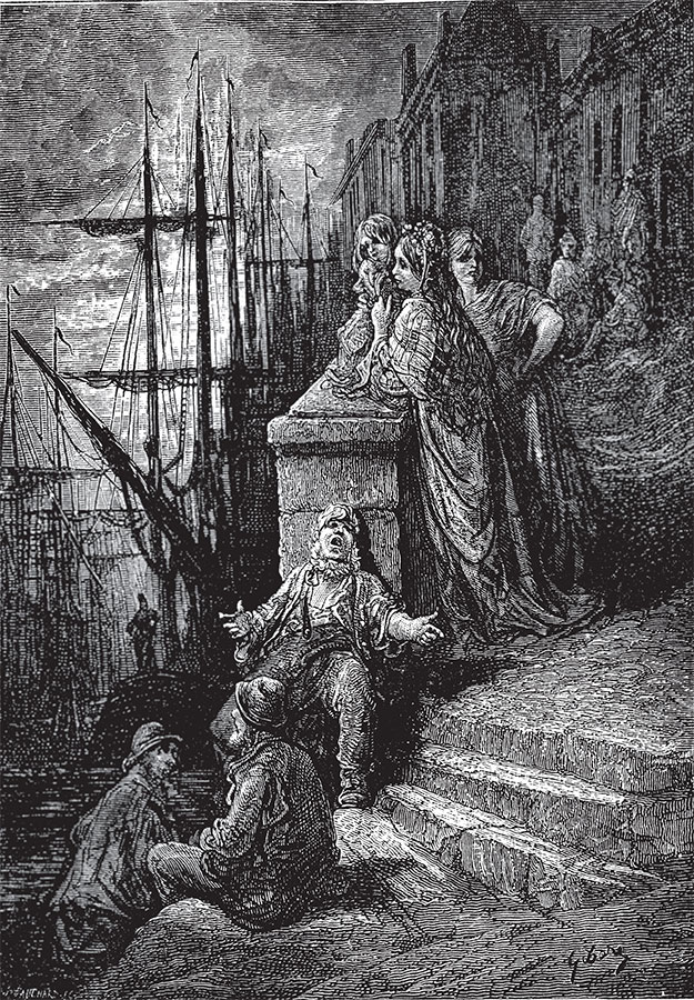 В окрестностях Лондонского моста и всех причалов, к которым подходят пассажирские пароходы, путешественник впервые сталкивается с гнетущей английской нищетой, возможно самой глубокой и разительной в юдоли слез, данной человеку для жизни. Именно здесь его в первый раз окружает бледная толпа отверженных; потом она часто будет вставать на его пути: впалые от голода щеки, лихорадочный блеск глаз, гнусные, развратные губы, печать порока на лбах, безобразное и в то же время тупое выражение лиц И вдруг эти призраки, вампиры и упыри оживают: надежда заработать шиллинг или просто получить шестипенсовик вселяет в них пыл и жар, ибо открывает дорогу к порции джина или бренди! Они набрасываются на узлы и чемоданы, расхватывают ваши вещи и охотно порвали бы вас на кусочки, лишь бы доказать свое усердие и желание услужить и хоть что-то урвать от ваших щедрот. Нигде попрошайки не выглядят столь корыстно и отталкивающе, как в Лондоне, и нигде нужда и обездоленность не проявляются в столь душераздирающей форме. В других странах от согретого и освещенного солнцем нищенства веет кое-какой романтикой, и это смягчает его горечь и приукрашивает его ужасающую суть. В испанском и итальянском нищем есть даже что-то театральное. Южные лохмотья так и просятся на карандаш; они вдохновляют художников, обещая на полотне выглядеть прилично. В Лондоне все не так, там нищета это нищета, и только, хотя нищий наряжается в поношенный фрак джентльмена и нахлобучивает на голову то, что некогда было шелковой шляпой, а теперь не имеет названия ни на одном из языков.