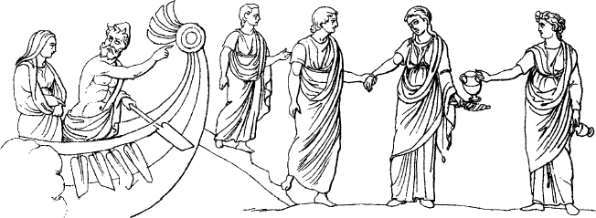 Катят там свои волны Коцит и Ахеронт; души умерших оглашают своим стенанием, полным печали, их мрачные берега. В подземном царстве струятся и дающие забвение всего земного воды реки Леты[15]. По мрачным полям царства Аида, заросшим бледными цветами асфодела[16], носятся бесплотные легкие тени умерших. Они сетуют на свою безрадостную жизнь, без света и без желаний. Тихо раздаются их стоны, едва уловимые, подобные шелесту увядших листьев, гонимых осенним ветром. Нет никому возврата из этого царства печали. Трехглавый адский пес Кербер[17], на шее которого движутся с грозным шипением змеи, сторожит выход. Суровый старый Харон, перевозчик душ умерших, не повезет через мрачные воды Ахеронта ни одну душу обратно, туда, где светит ярко солнце жизни. На вечное безрадостное существование обречены души умерших в мрачном царстве Аида.
