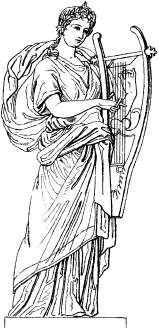 Аполлон явился на вызов в длинной пышной хламиде, в лавровом венке и с золотой кифарой в руках.
