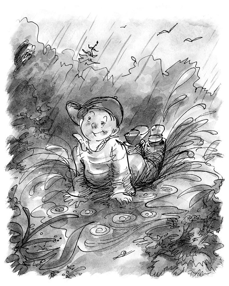Прямо перед ними из маленькой грязной лужи фонтаном во все стороны летели брызги, и в самой середине, разбрызгивая воду руками и ногами, лежал Мортен. Грязная вода потоками струилась по его лицу.