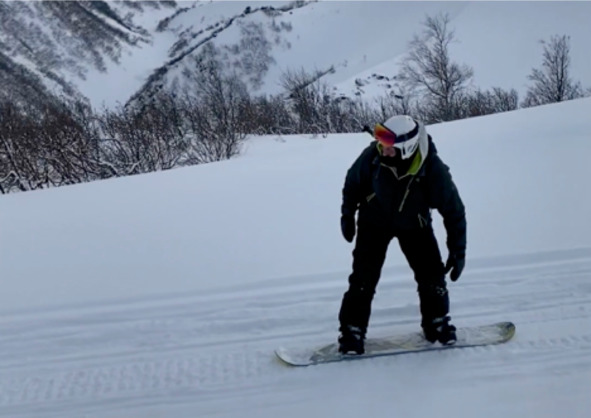 Итак, мой сноуборд начал свое скольжение, и для набора большей скорости я стал делать небольшие прыжковые выпады вперед, как бы давая сноуборду набрать скорость побыстрее.