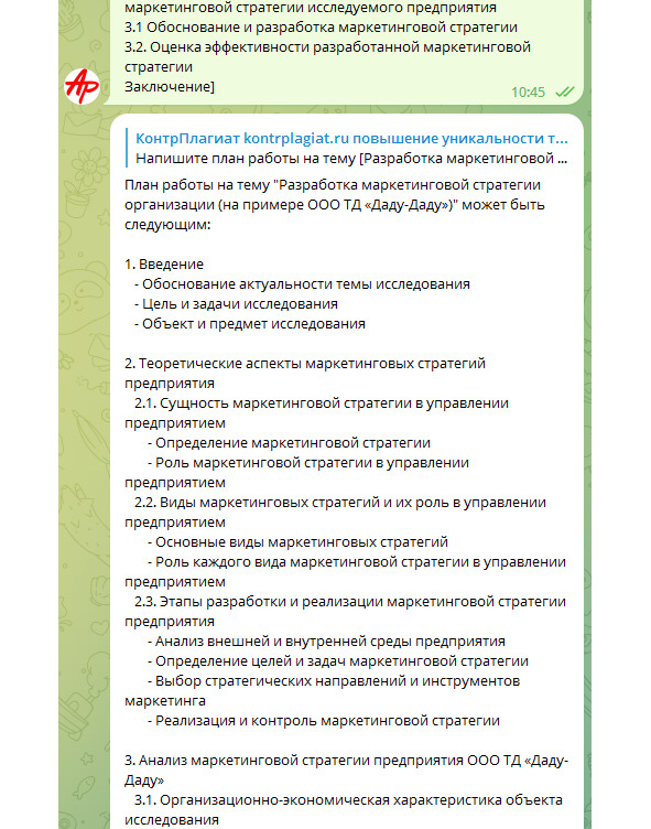 Ниже приведен промпт 11, который поможет составить план работы, на тему: «Разработка маркетинговой стратегии организации (на примере ООО ТД «Даду-Даду»), на основании условий и найденной литературы, рис. 61.