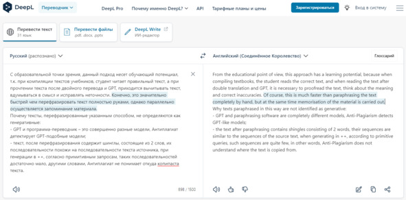GPT и программа-переводчик это совершенно разные модели, Антиплагиат детектирует GPT-подобные модели;