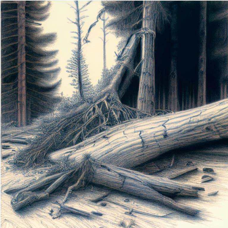 Очень толстые стволы сосен, когда падали под собственным весом сильно расщеплялись. Мне бы пригодилась только та часть, которая были почти плоской. Но что делать с рукояткой?