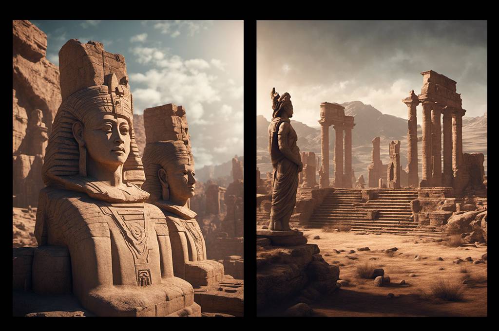 Следующие иллюстрации погружают нас в древние руины, полные тайн и загадок. Эти археологические чудеса приглашают нас совершить путешествие во времени и проникнуть в историю вымышленных цивилизаций. Наблюдайте за многогранной архитектурой, которая кажется, как будто выросла из самой природы.
