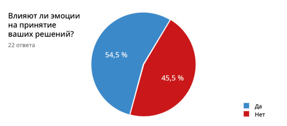 В настоящий момент 40% опрошенных участников выражают сожаление по поводу своих ранее принятых решений, которые дались отнюдь не легко.. Это уже относится к длительному восприятию и эмоциональному переживанию. Из этичных соображений это исследование анонимное, и мы намеренно не спрашивали, о каких конкретно решениях сожалеют наши эксперты, но факт остается фактом: люди переживают о поступках, на которые им было трудно решиться.
