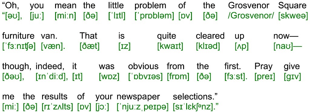 Oh, you mean the little problem of the Grosvenor Square furniture van. That is quite cleared up nowthough, indeed, it was obvious from the first. Pray give me the results of your newspaper selections.