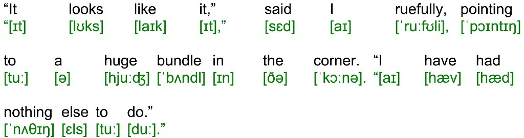 Таким образом, чтение рассказа производится с «подсказками» в виде транскрипции и прослушиванием аудиокниги.