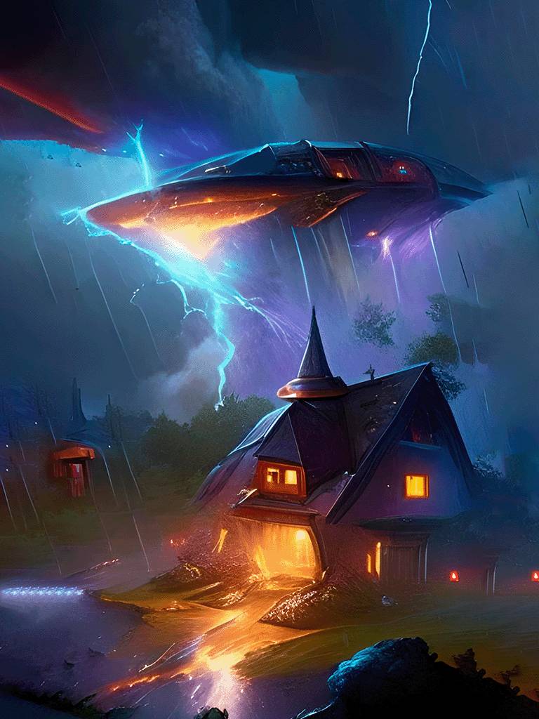 Космический корабль пронёсся мимо деревни и рухнул за ней на водонапорную башню! перебил его взволнованный Молли.