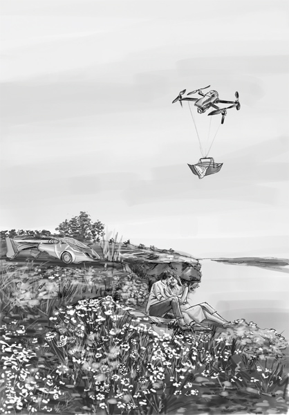 Аэромобиль, описав в воздухе дугу, сел на вершине пригорка. Аня выбралась из салона, потянулась и спустилась по лощинке к воде.