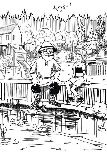 Человечек на перилах продолжал невозмутимо сидеть, покачивая ногами над водой. Павлик прошёл по мощёной дорожке, ощущая голыми ступнями мелкие камешки, и подумал, что если он это чувствует, то это точно не сон. Прошлёпав босыми ногами по деревянному настилу, он подошёл к человечку.
