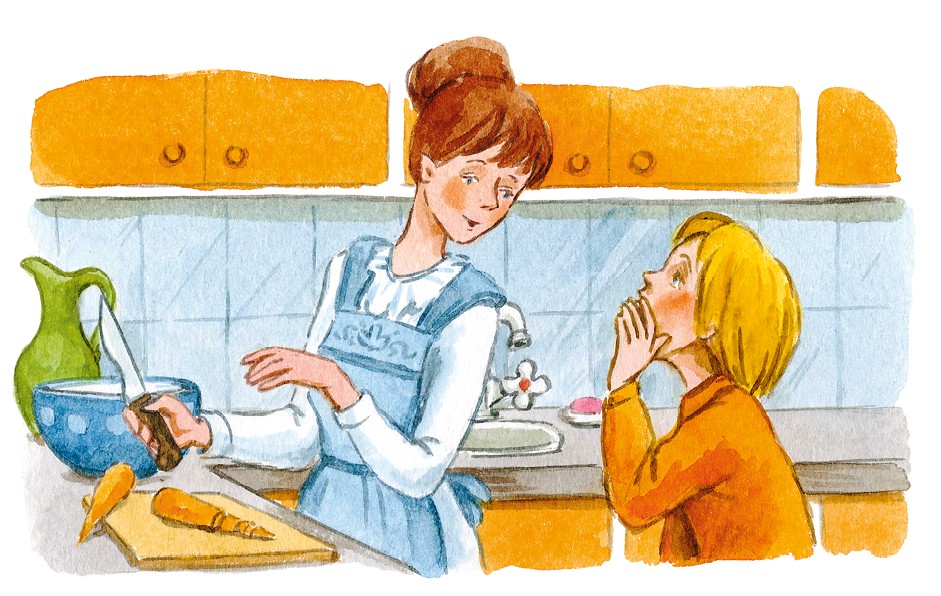 Бьёрнар достал тарелки из буфета, нашёл чайные ложки и ножи, но большие тарелки были на верхней полке, до которой ему было не дотянуться. Пришлось Эве встать на стремянку и достать их.
