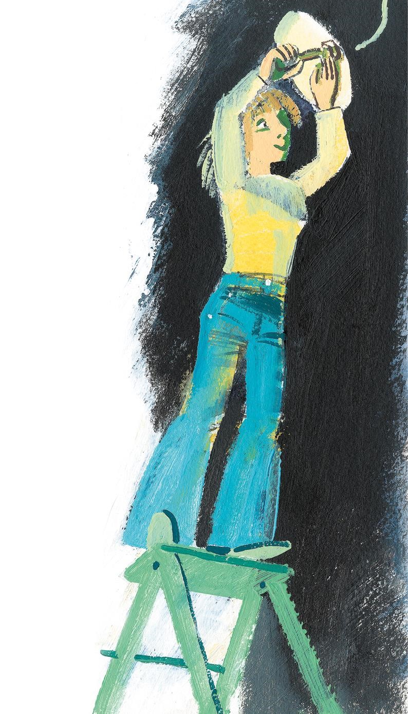 Мама расставила стремянку и полезла вывинчивать лампочку.