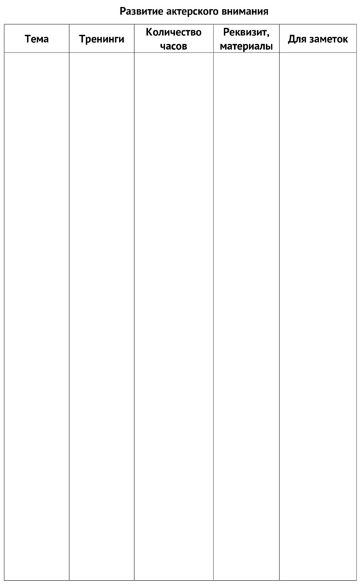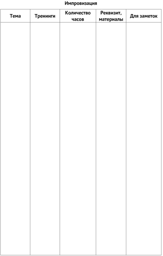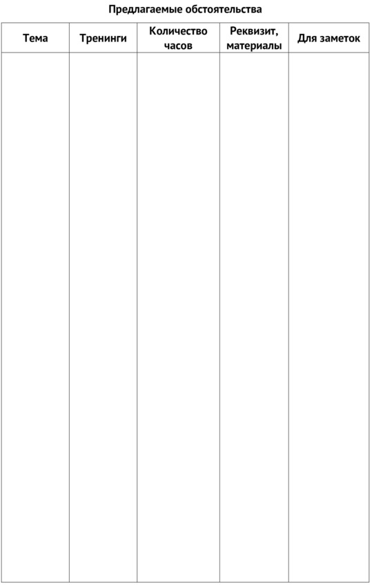 В ячейки вы можете вписывать количество проведенных часов, подтемы занятий, отмечать подходящие тренинги, прописывать практическую деятельность, необходимый реквизит или материалы для занятий, кто присутствовал на занятии и т. д.