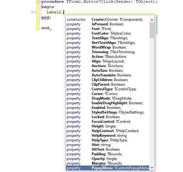 Из длинного списка свойств и действий, предлагаемого подсказкой после ввода названия компонента и точки, означающей ввод свойств или действий, на самом деле используется обычно только ввод и вывод текста, а чаще всего Label используется вообще однократно при создании приложения для заголовков или подписей.