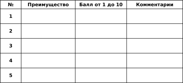ПРАКТИКА: Выпишите, какие преимущества для вашего бренда дает использование пресс-релиза. Отметьте по 10-балльной шкале, какие из них являются наиболее приоритетными для вашего бизнеса.
