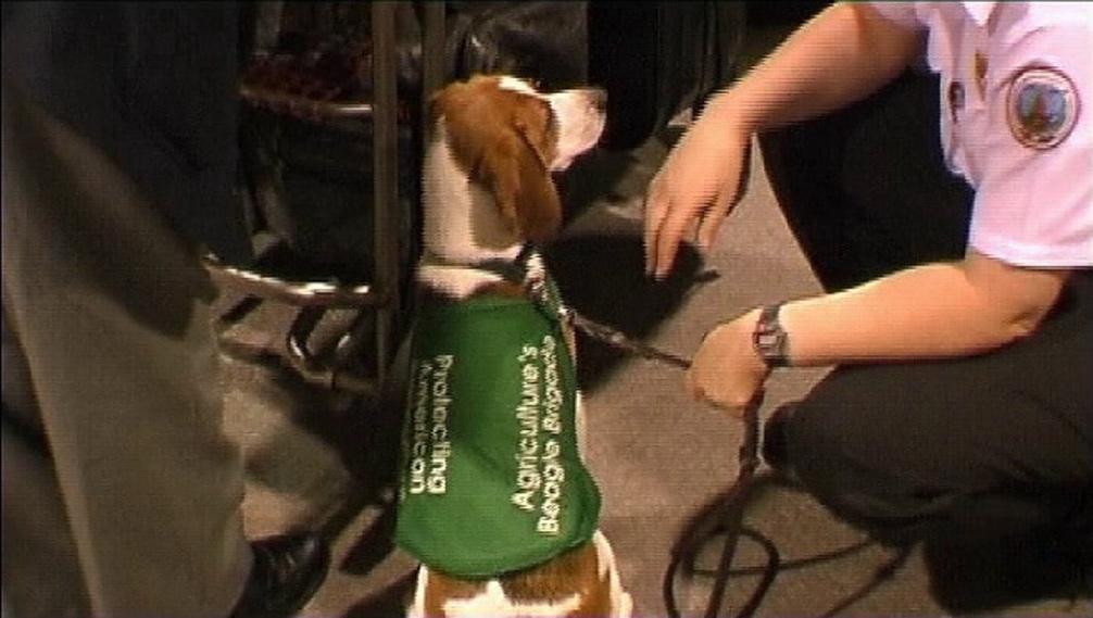 Специально обученные поиску, четвероногие агенты вынюхивали витаминосодержащие плоды запрета с возможной болезненной косточкой, для чего вставали на задние лапки и просовывали свои мордочки в предметы багажа туристов. Я вынул камеру и стал снимать необычную работу собачек, находящихся на службе её величества Америки.