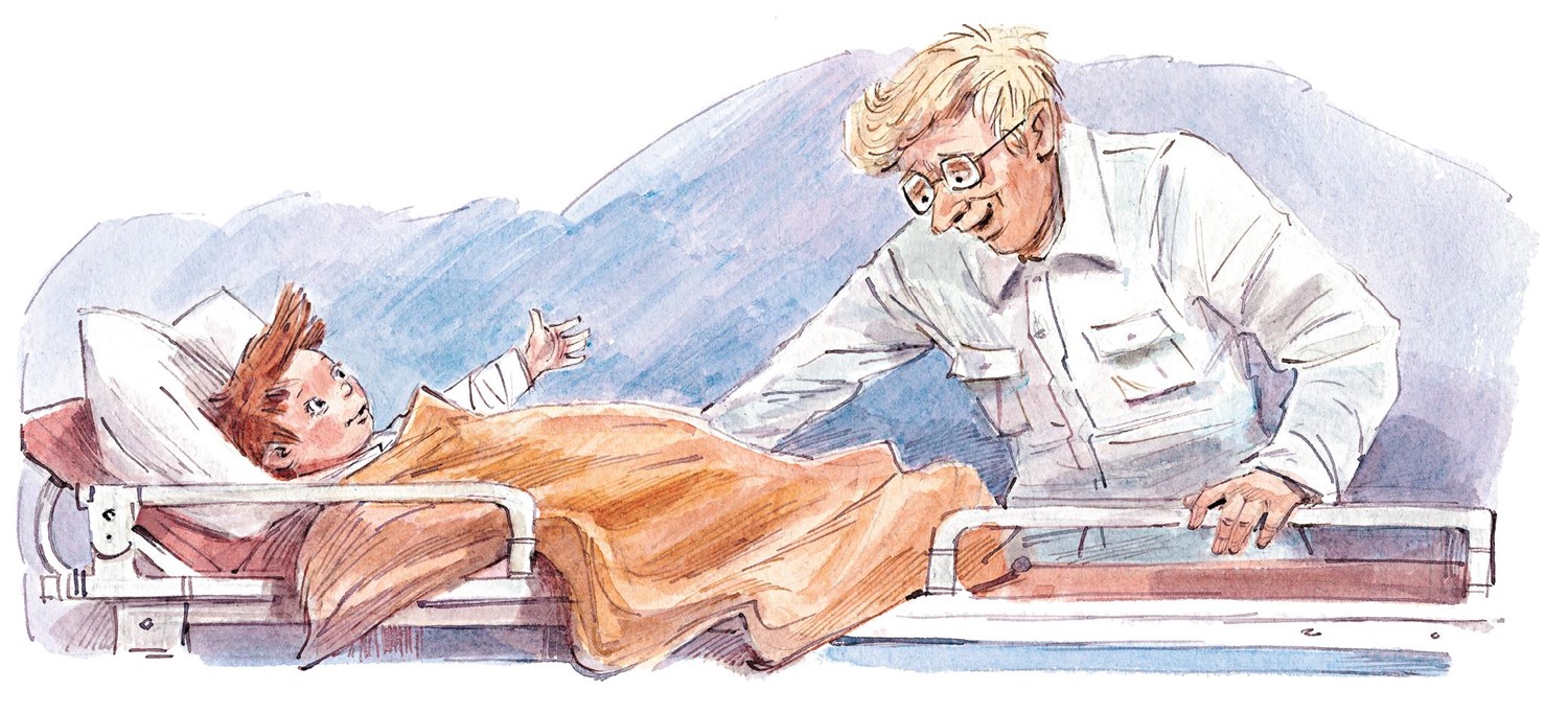 Хорошо, кивнул Бьёрн. Я так и подумал, что будет кто-то твоего размера. Обычно мы вдвоём пациента перекладываем с кровати на каталку, взрослые-то они тяжёлые, а сегодня меня одного отправили. Но ничего, мы с тобой справимся. Возьми меня за шею, да, вот так. Теперь мы тебя закутаем, чтобы дорогой не застудить. Ну всё, готово, поехали.