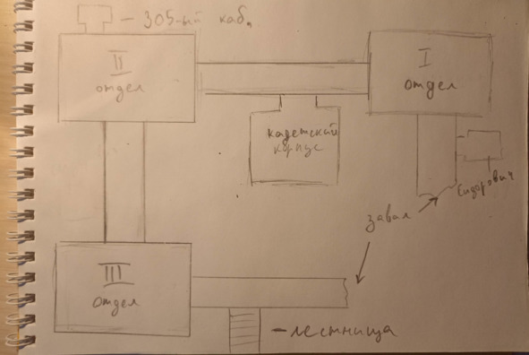 Кадеты мы тутовские. За этой железной дверью наш корпус. Там все остальные сидят. Но тебе туда нельзя. Меня самого Илья зовут, сказал Илья, ты, наверное, к Ирине Поляковой шел? Тебе прямо, а потом на право. Хочешь схему 3-его этажа нарисую?