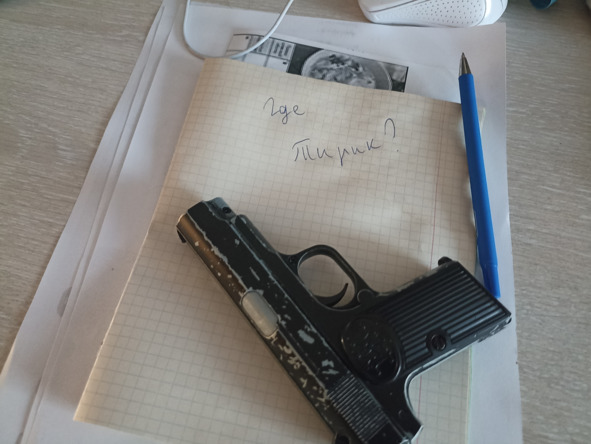 Славик ушел к раковине, а я остался стоять рядом с его местом. Учительский стол, который являлся рабочим местом Славика, был заполнен пустыми банками он энергетиков и газировок, а так же большим количеством бумаг. На одной из стопок бумаг лежал его пистолет.