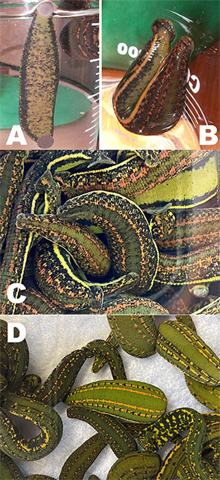 Рис. 1. Пиявка медицинская (Hirudo medicinalis): AB пиявка медицинская лечебная (Hirudo medicinalis medicinalis), фото 14.10.2009; С пиявка медицинская аптекарская (Hirudo medicinalis officinalis или verbana), фото 23.08.2020; D пиявка медицинская восточная (Hirudo medicinalis orientalis), фото 27.07.2020