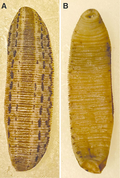 Рис. 3. Пиявка турецкая Hirudo sulukii из озера Sülüklü Lake, Turkey (Saglam et al., 2016): A вид со стороны спины; B вид брюшка (https://en.wikipedia.org/wiki/Hirudo_sulukii#/media/File:Hirudo_sulukii.png)