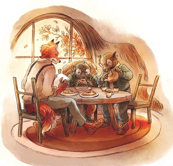 Арчибальд стоял у своего дерева и размахивал в знак прощания вышитой салфеткой, словно обещая им новую встречу за чашкой чая, пока гости не скрылись из виду. А потом, уютно расположившись в своём кресле и устремив взгляд на портрет, он задумался о тех далёких временах, когда он, маленький лисёнок, ростом не выше трёх положенных друг на друга яблок, слушал рассказы своего деда-весельчака. Сможет ли он сам когда-нибудь с такой же лёгкостью сочинять истории, которые будут пробуждать воображение маленьких зверят? С этой мыслью сытый лис задремал.