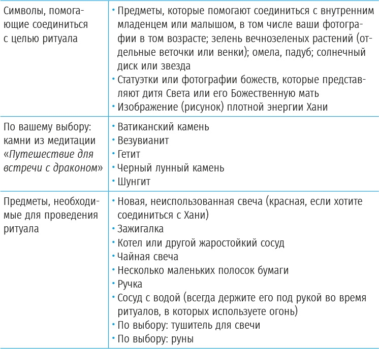 Этот ритуал является приглашением соединиться с чистой сутью внутреннего младенца, нашим личным опытом Божественного ребенка. С точки зрения алхимии внутренний младенец это первичная материя, та, что ускоряет весь процесс создания философского камня. Через символическое воспроизводство первой алхимической стадии прокаливания, в которой материя превращается в пепел, чтобы сжечь все то, что уже не служит во благо, этот ритуал необходим для того, чтобы напомнить вам о прекрасной сути, которая находится внутри. Это празднование рождения Чудесного ребенка, которым вы были и которым являетесь сейчас!