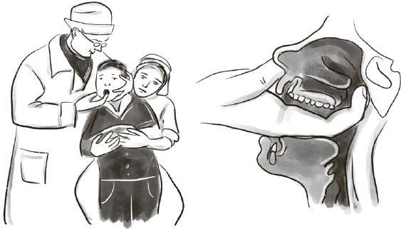 Метод диагностики прямиком со средневековых гравюр. Ребенку засовывают палец в рот по самое «не могу» и пытаются что-то нащупать в носоглотке, игнорируя слабеющие трепыхания ни в чем не повинного тельца. Говоря сухим академическим языком, метод слишком субъективный и неинформативный. Говоря по-человечески, это сущее надругательство над ребенком, бессмысленное и беспощадное. Это именно тот случай, когда хочется сказать: «Себе палец в глотку засунь!»