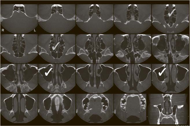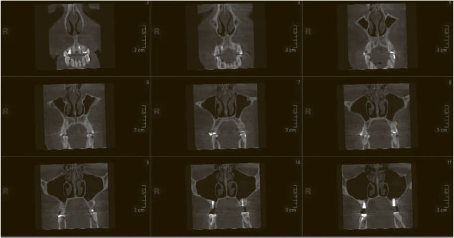 Компьютерная томограмма придаточных пазух носа, фронтальная проекция