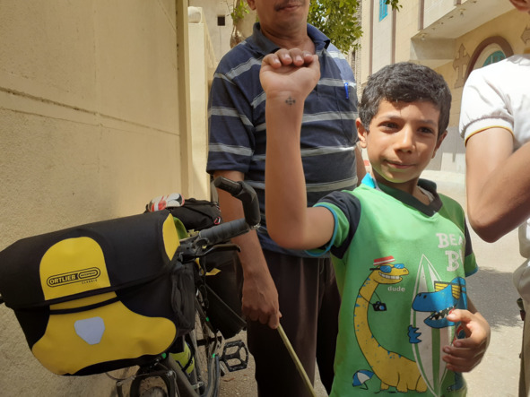 Неумышленно получилось, что сегодня мы на некоторое время остались без надзора полиции. Выехали за ворота, крикнули полиции, что поехали, но никто не отреагировал. Мы решили не вмешиваться в их отдых и отправились дальше. Час у нас получился насыщенным свободой. Мы ехали без чувства, что кто-то смотрит в спину и контролирует нас, миновали пост полиции, проехали мимо крестьян и выехали к деревушке. Дети возвращались из школы на ослицах. Ослы здесь используются очень часто. Проехали по узким трущобным улочкам и упёрлись в церковь, а рядом большой участок полиции, который ограничивал размеры этого христианского района.