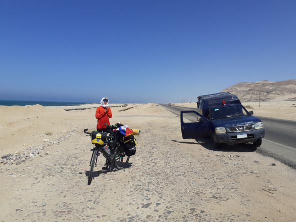 Сегодня мы выехали на свою трансмаршрутную линию Египет ЮАР, дорога к югу на север. Первый городок, как только нас высадили за Суэцким каналом, Суэц. Под сопровождением мы ехали по городку на рынок, где взяли овощи, сыр, финики и, конечно же, хлебные лепёшки. Любой город хотелось покинуть сразу же, слишком здесь шумно, хаотично, жарко и постоянно сигналили машины друг другу в знак внимания, потому что светофоров почти нет в Египте. Всё, что мы видели, скрашивалось редкой зеленью оазисов, которые расположены в этой пустыне, сползающей к краю континента Африка.