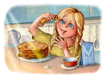 пыталась нарисовать на блине смешную рожицу, но та быстро растекалась, превращаясь в белую сладкую кляксу. Свернув всё это кулинарное великолепие в тонкую трубочку, девочка с удовольствием отправила ее в рот. «Вкуснотища! зажмурилась от удовольствия Милаша. Так и хочется откусить кусочек побольше», подумала она.