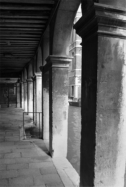 Пройдите под арочным портиком, следующим вдоль набережной. Это сотопортего[15] дель Трагетто (sotoportego del Traghetto, «Паромный проход»), место самой древней паромной переправы в городе. Она действовала аж с IX века, когда дож Анджело Партечипацио повелел держать здесь парусные лодки для сообщения с Мурано. Как легко можно видеть, все колонны исписаны граффити и надписями. Большинство из из них оставлено паромщиками, они просто сообщают о ценах перевозки на Мурано, Бурано, Мазорбо, Торчелло, Сант-Эразмо и Виньоле[16].
