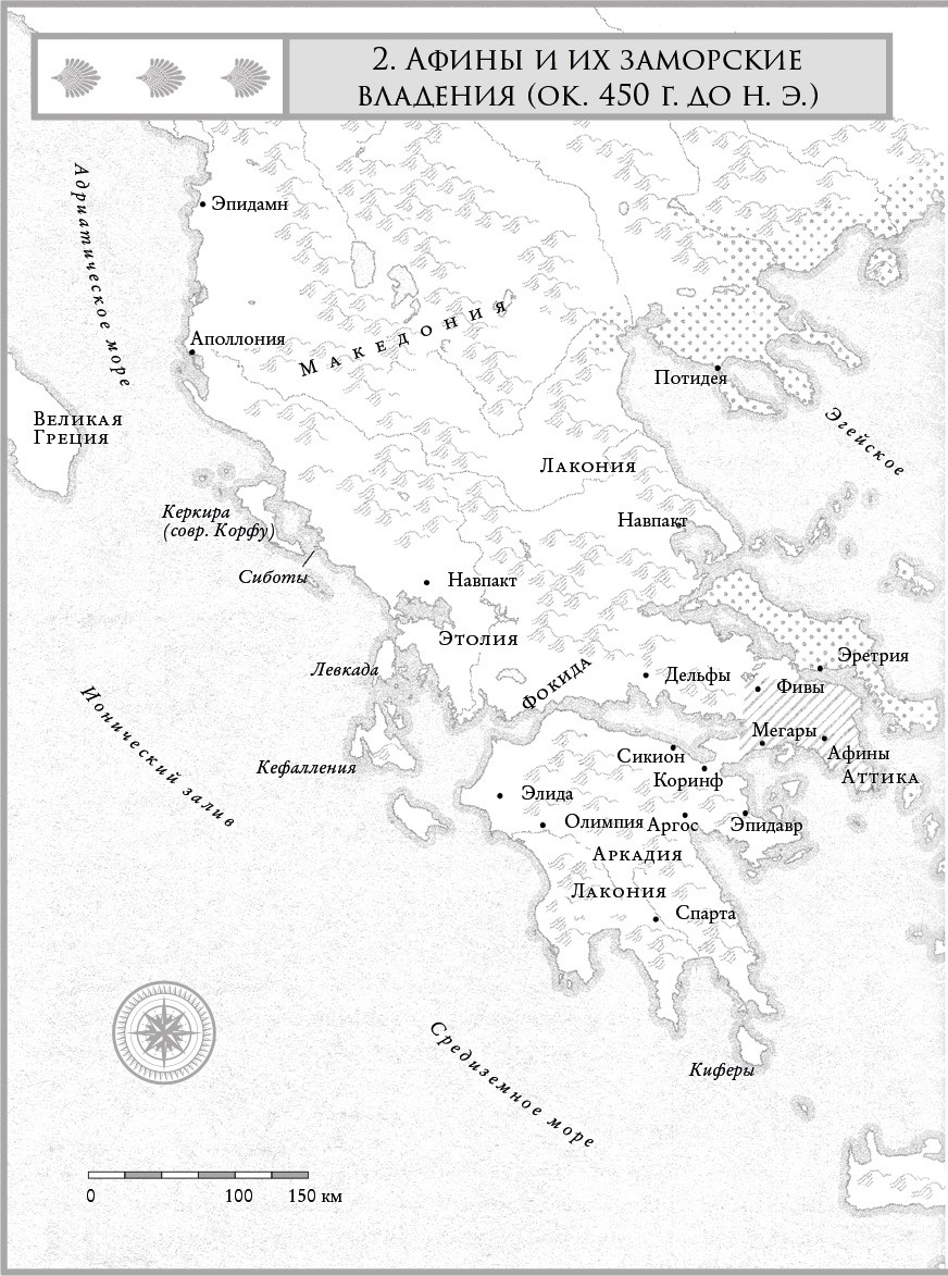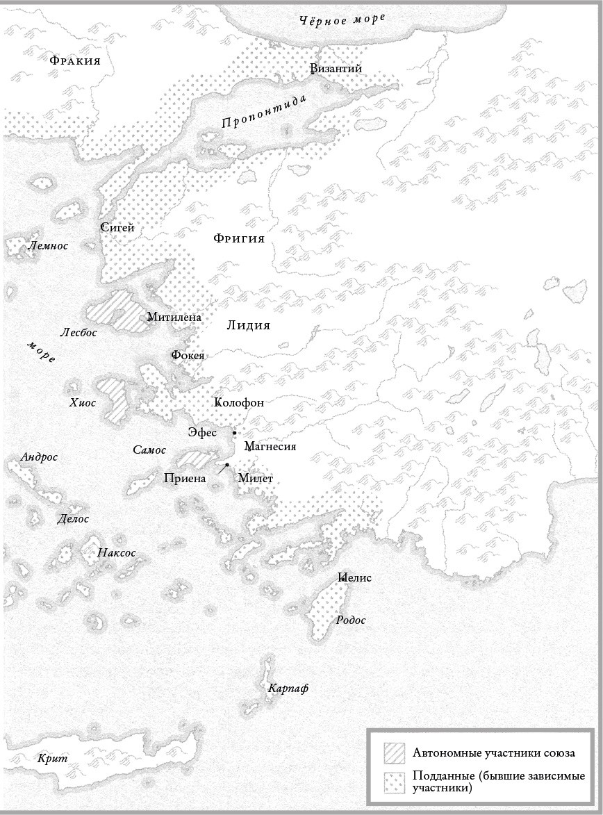 Сила и процветание афинской демократии опирались прежде всего на лидерство могущественной морской империи, сосредоточенной в приморских городах и на островах Эгейского моря. Она зародилась как объединение «афинян и их союзников», которое современные исследователи именуют Делосским союзом, это был добровольный альянс греческих полисов, призвавших Афины сыграть руководящую роль в продолжении освободительно-мстительной войны против Персии. Постепенно союз превратился в империю под управлением Афин, функционировавшую преимущественно на их благо (карта 2). С годами почти все члены союза отказались от своих флотов, предпочитая делать денежные взносы в общую казну. Афиняне использовали эти средства, чтобы расширять собственный флот, а также платить гребцам, чтобы те работали веслами по восемь месяцев в году, так что в конечном счете Афины обладали крупнейшим и лучшим флотом во всей Греции. К началу Пелопоннесской войны из всех 150 членов союза лишь два острова, Лесбос и Хиос, имели свои флотилии и относительную автономию. Однако даже они едва ли могли ослушаться приказов Афин.
