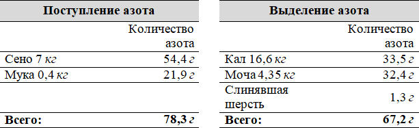 Таблица 1. Поступление и выделение азота в теле бычка.