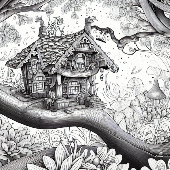 На ветвях большого дерева стоял маленький домик, в котором жила семья белок.