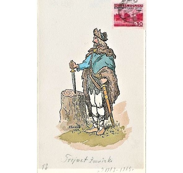 Транята (уяўны партрэт, 1908). Мечыслаў Барвіцкі. Паштоўка, выдадзеная ў 1935