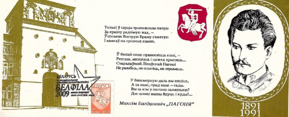 «Пагоня». Максім Багдановіч (18911917). Картмаксімум з маркай Герб Рэспублікі Беларусь Пагоня, выдадзенай поштай Беларусі ў 1993